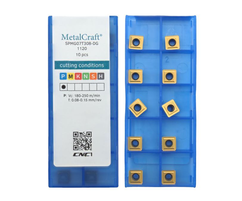 Твердосплавная сменная пластина SPMG07T308-DG-1120 используется для сверления отверстий в заготовках из различных материалов. Защитное покрытие 1120 позволяет эффективно обрабатывать сталь. Форма пластины S (квадрат), длина режущей кромки 7.94 мм, задний угол 15.5°.