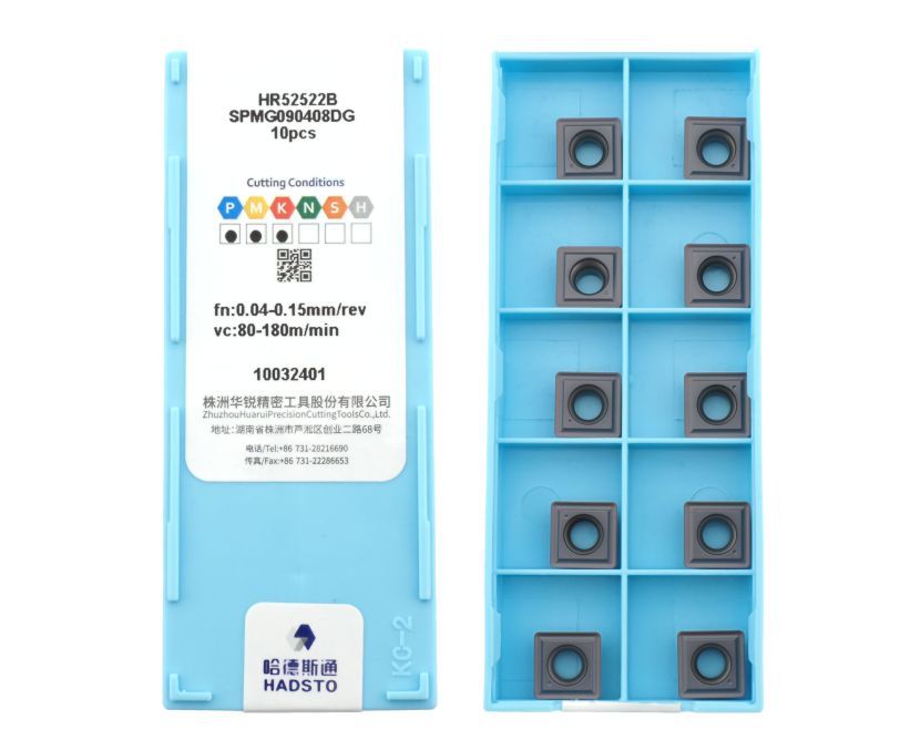 Твердосплавная сменная пластина SPMG090408DG-HR52522B (HADSTO) используется для сверления отверстий в заготовках из различных материалов. Защитное покрытие HR52522B позволяет эффективно обрабатывать сталь, нержавеющую сталь и чугун. Форма пластины S (квадрат), длина режущей кромки 9.8 мм, задний угол 17.5°.