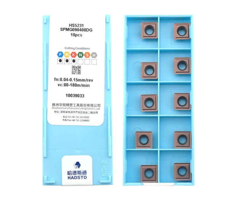 Твердосплавная сменная пластина SPMG090408DG-HS5231 (HADSTO) используется для сверления отверстий в заготовках из различных материалов. Защитное покрытие HS5231 позволяет эффективно обрабатывать сталь, нержавеющую сталь и чугун. Форма пластины S (квадрат), длина режущей кромки 9.8 мм, задний угол 11°.