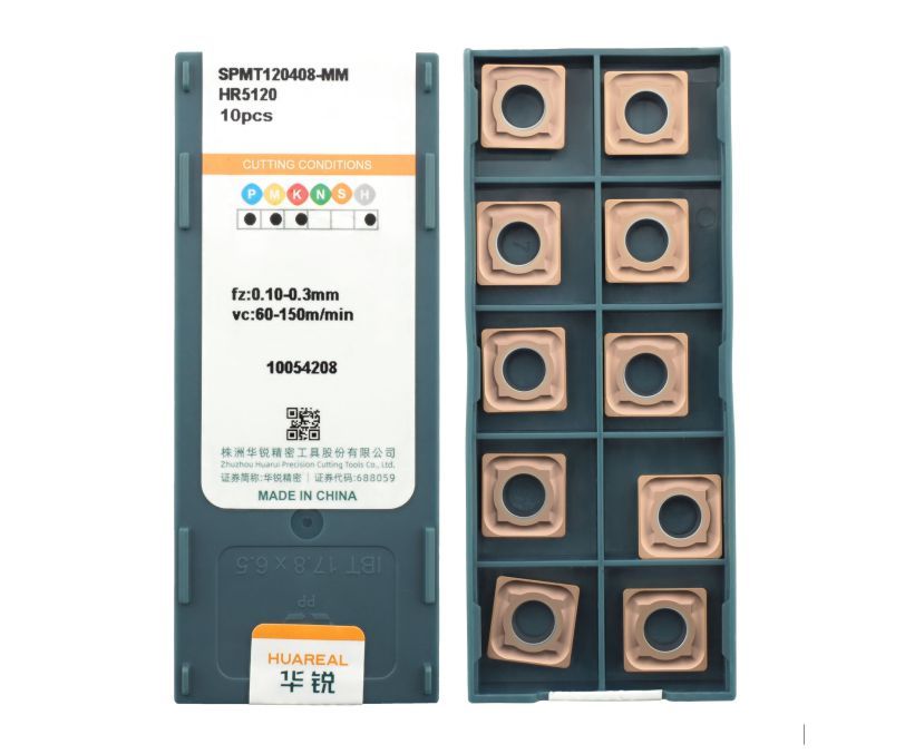 Фрезерная пластина SPMT120408-MM-HR5120 бренда Huareal применяется для обработки заготовок из стали, нержавеющей стали и чугуна.