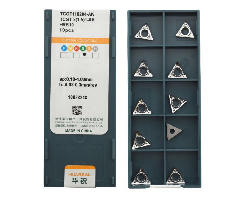 Твердосплавная сменная пластина TCGT110204-AK-HRK10 бренда Huareal применяется для получистовой обработки заготовок из алюминия и сплавов цветных металлов.