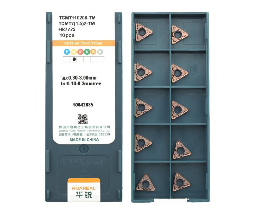 Твердосплавная сменная пластина TCMT110208-TM-HR7225 бренда Huareal применяется для получистовой обработки заготовок из нержавеющей стали.