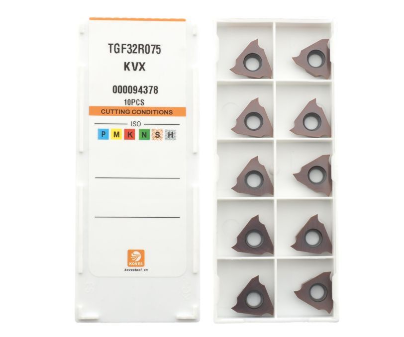 Твердосплавная сменная пластина TGF32R075-KVX (стандарт Kyocera) используется для отрезки и обработки канавок. Защитное покрытие KVX позволяет эффективно обрабатывать заготовки из стали и нержавеющей стали. Правое исполнение. Ширина пластины 0.75 мм. Радиус при вершине 0.1 мм.