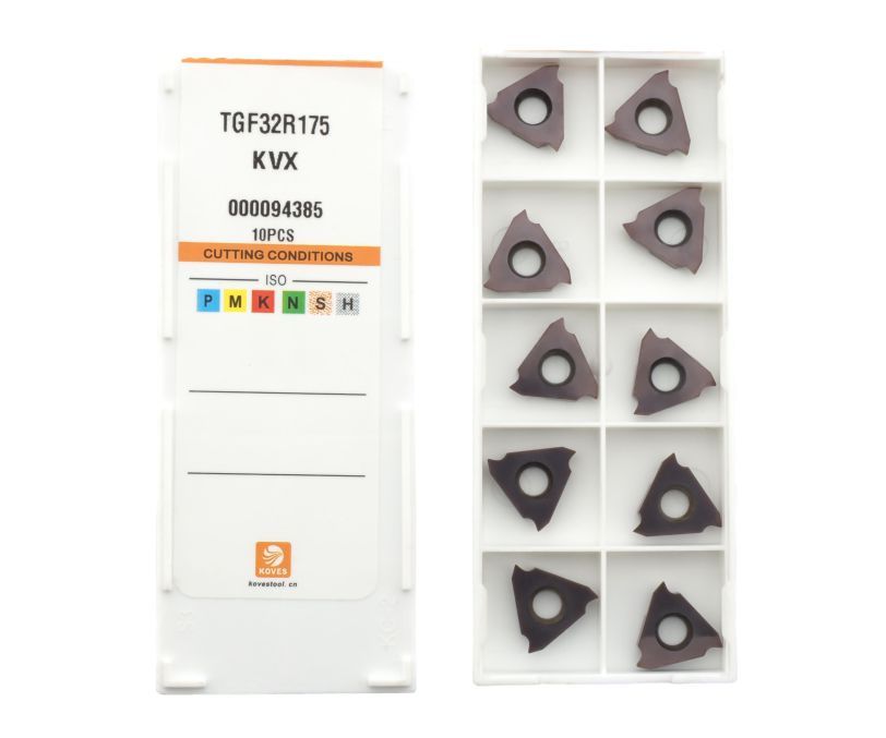 Твердосплавная сменная пластина TGF32R175-KVX (стандарт Kyocera) используется для отрезки и обработки канавок. Защитное покрытие KVX позволяет эффективно обрабатывать заготовки из стали и нержавеющей стали. Правое исполнение. Ширина пластины 1.75 мм. Радиус при вершине 0.1 мм.