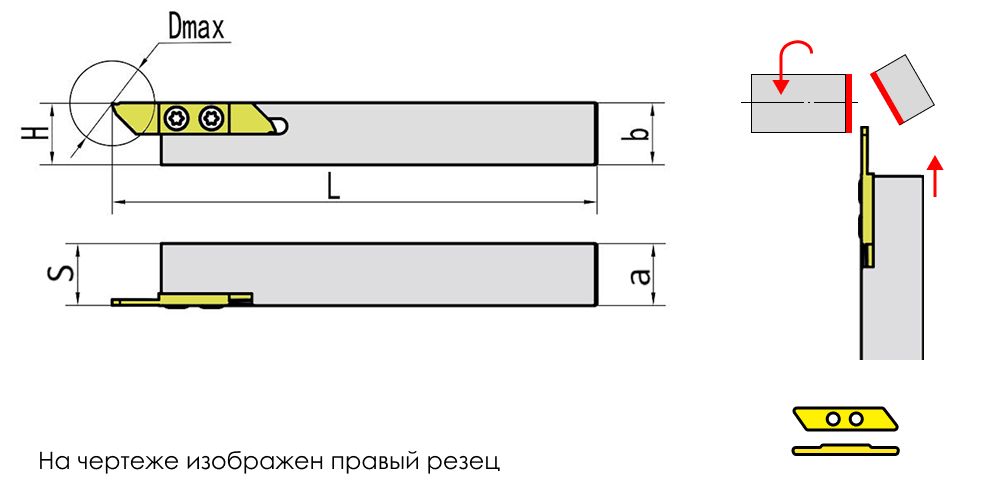 Резец токарный(державка) THCR2525M42 по металлу со сменными пластинами. Применяется для обработки наружных канавок. Сечение резца - 25 x 25 мм; длина - 150 (M).