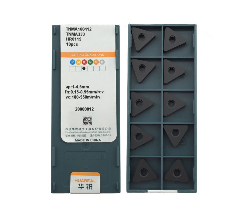Твердосплавная сменная пластина TNMA160412-HR6115 бренда Huareal применяется для черновой обработки заготовок из чугуна.