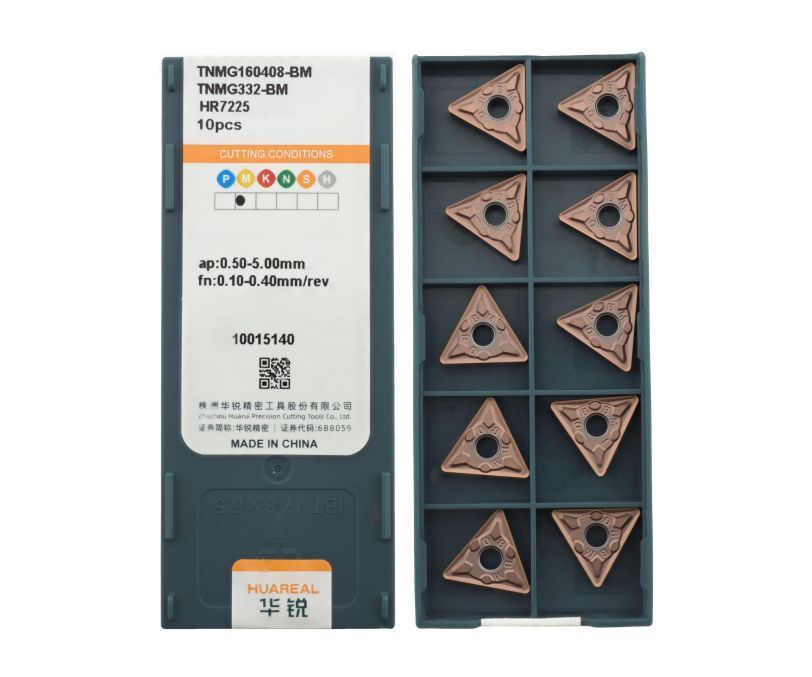 Твердосплавная сменная пластина TNMG160408-BM-HR7225 бренда Huareal применяется для получистовой обработки заготовок из нержавеющей стали.