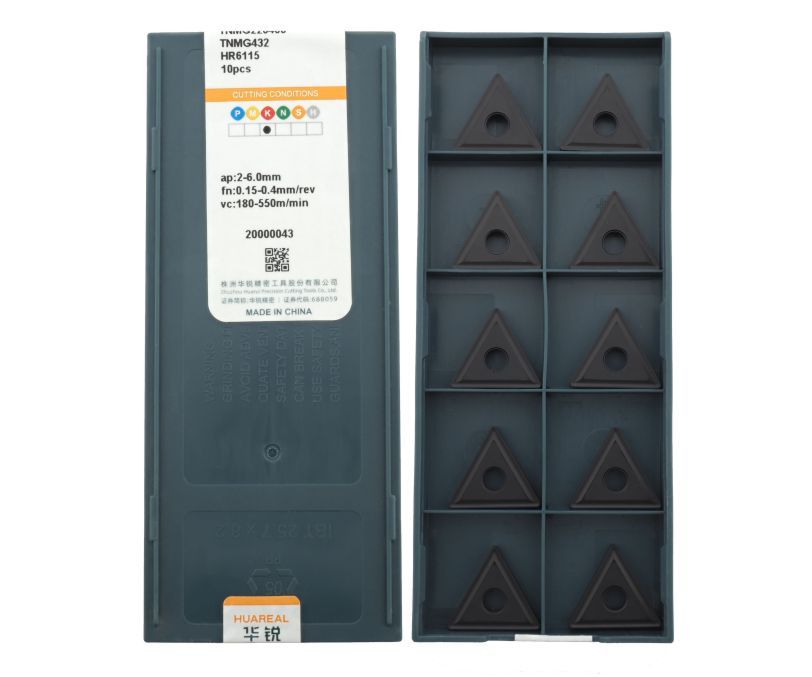 Твердосплавная сменная пластина TNMG220408-HR6115 бренда Huareal применяется для получистовой обработки заготовок из чугуна.