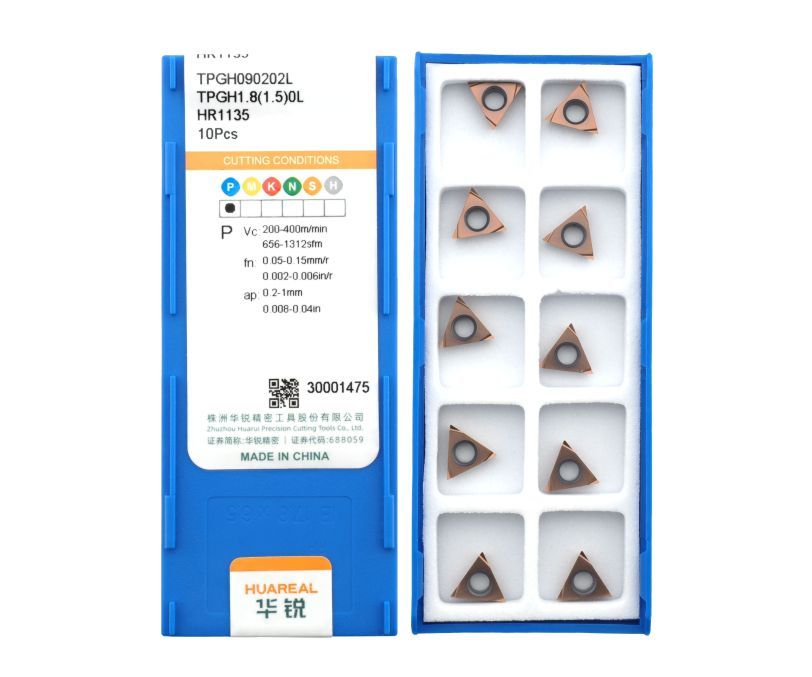 Твердосплавная сменная пластина TPGH090202L-HR1135 бренда Huareal применяется для чистовой обработки заготовок из стали.