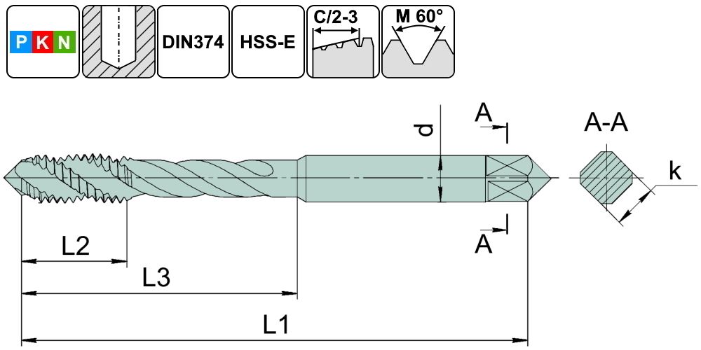 TSF1.M5х0,5.6H.DIN374.M35 Метчик М5х0,5 для глухих отверстий, DIN374, без покрытия