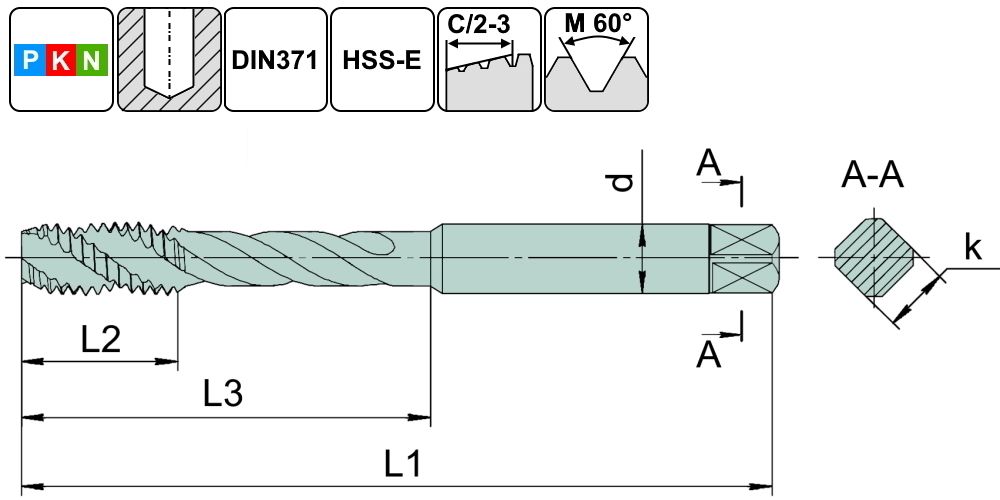 Метчик TSF1.M8х1,25.6H.DIN371.M35 (бренд Schwarzmaier) применяется для изготовления метрической резьбы M8 с крупным шагом 1.25 мм в отверстиях глухого типа. Инструмент изготовлен из высококачественной быстрорежущей стали HSS-E (с 5% содержанием Co). Исполнение метчика: со спиральными канавками, без покрытия, стандарт хвостовика DIN371. Обрабатываемый материал: сталь, чугун, цветные металлы.