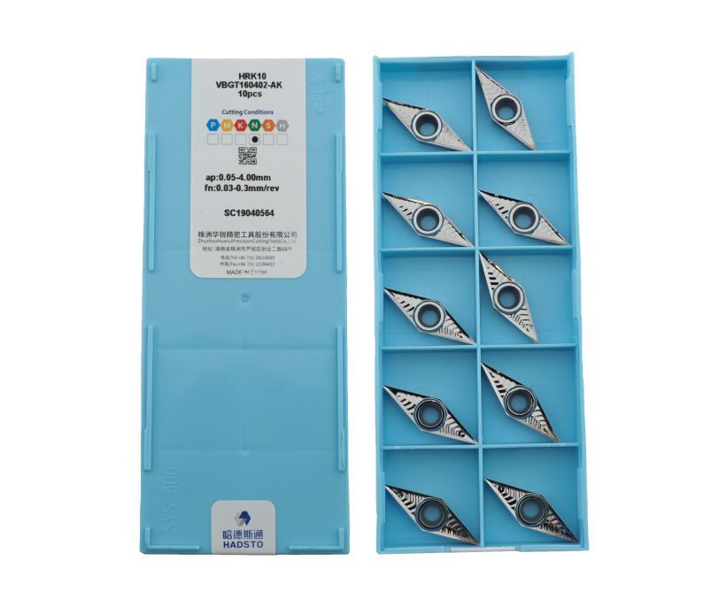 Твердосплавная сменная пластина VBGT160402-AK-HRK10 бренда Huareal применяется для чистовой обработки заготовок из алюминия и сплавов цветных металлов.