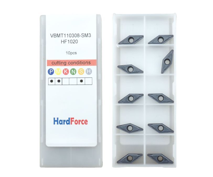 Твердосплавная сменная пластина VBMT110308-SM3-1020 бренда MetalCraft применяется для получистовой обработки заготовок из нержавеющей стали и жаропрочных сплавов.