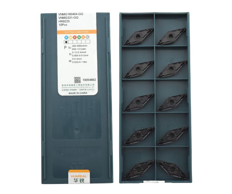 Твердосплавная сменная пластина VNMG160404-GQ-HR8225 бренда Huareal применяется для получистовой обработки заготовок из стали.