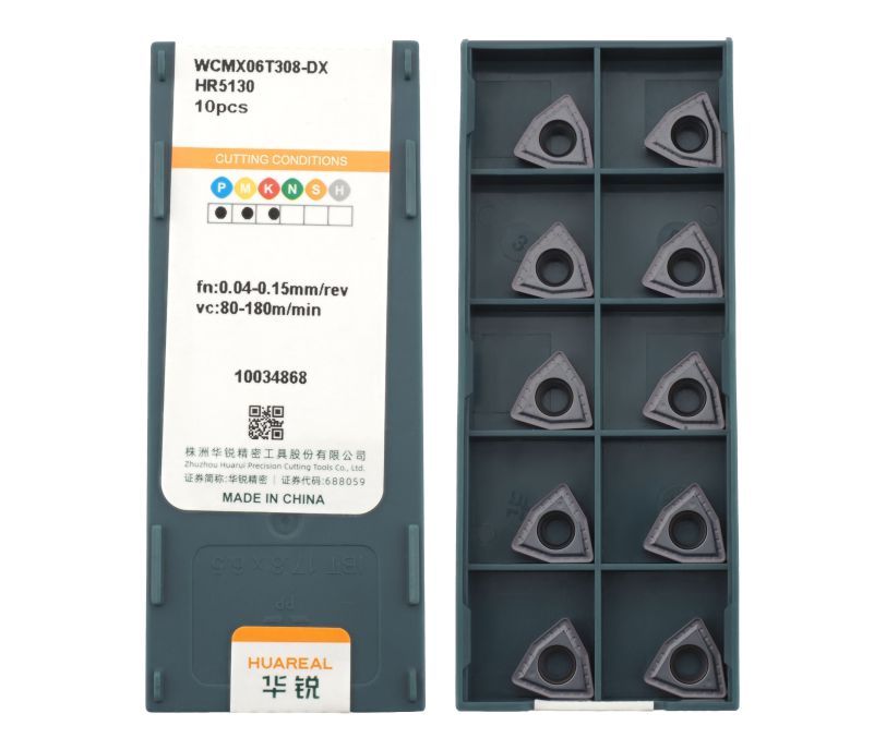 Твердосплавная сменная пластина WCMX06T308-DX-HR5130 (Huareal) используется для сверления отверстий в заготовках из различных материалов. Защитное покрытие HR5130 позволяет эффективно обрабатывать сталь, нержавеющую сталь и чугун. Форма пластины W (тригональная 80°), длина режущей кромки 6.5 мм, задний угол 7°.