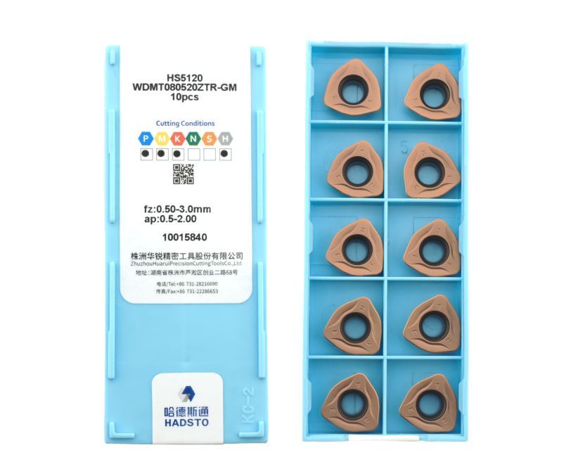 Фрезерная пластина WDMT080520ZTR-GM-HS5120 бренда HADSTO применяется для получистовой обработки заготовок из стали, нержавеющей стали и чугуна.