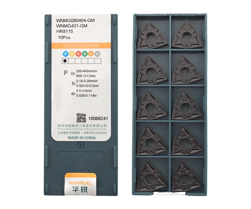 Твердосплавная сменная пластина WNMG080404-GM-HR8115 бренда Huareal применяется для получистовой обработки заготовок из стали.