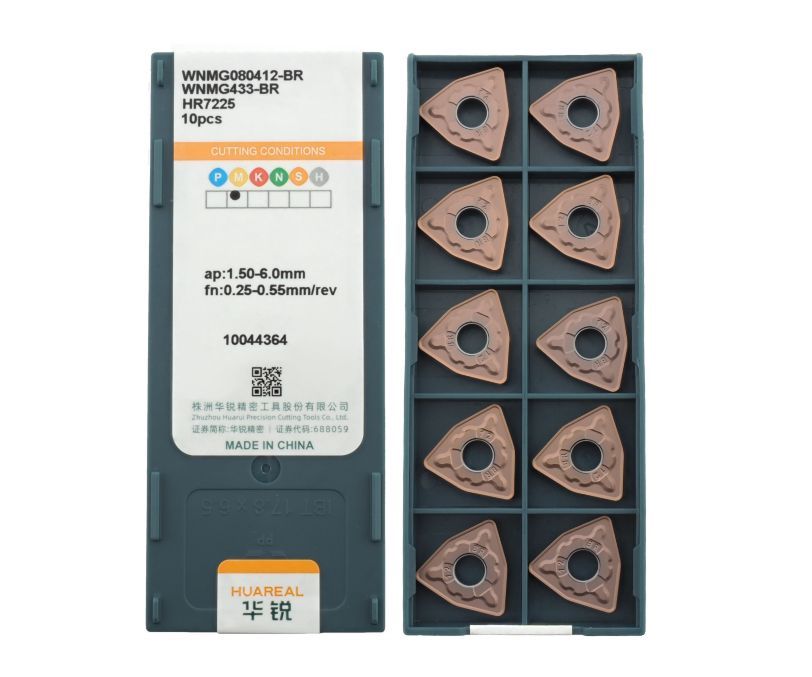 Твердосплавная сменная пластина WNMG080412-BR-HR7225 бренда Huareal применяется для черновой обработки заготовок из нержавеющей стали.