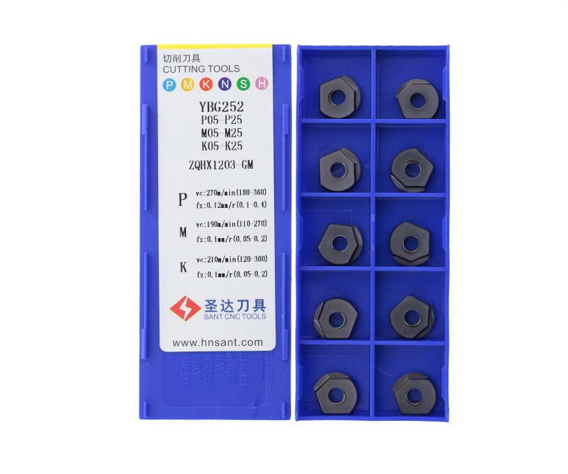 Пластина твердосплавная сменная производства SANT. Покрытие: YBG252. Область применения: корпусные фрезы; сталь, нержавеющая сталь, чугун.