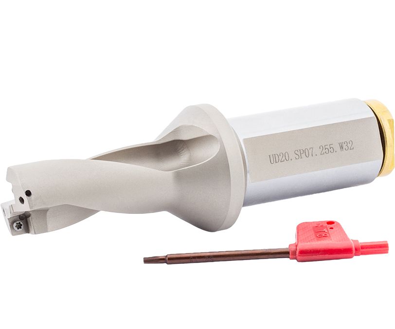Сверло со сменными пластинами, отношение длины к диаметру D/L=2, типа UD20 с внутренним подводом СОЖ. Рабочий диаметр D=25,5 мм, диаметр хвостовика Weldon d=32 мм. Максимальная глубина сверления Lc=52 мм. Применяемые пластины: SP..07T308.