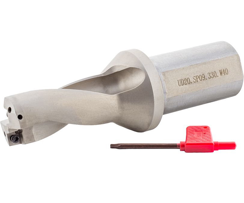Сверло со сменными пластинами, отношение длины к диаметру D/L=2, типа UD20 с внутренним подводом СОЖ. Рабочий диаметр D=33 мм, диаметр хвостовика Weldon d=40 мм. Максимальная глубина сверления Lc=66 мм. Применяемые пластины: SP..090408.
