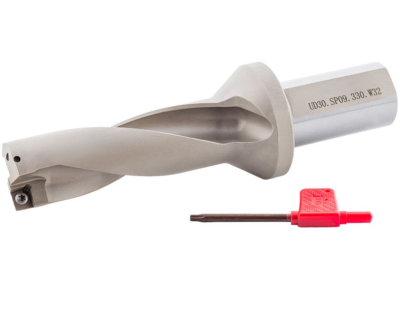 Сверло со сменными пластинами, отношение длины к диаметру D/L=3, типа UD30 с внутренним подводом СОЖ. Рабочий диаметр D=33 мм, диаметр хвостовика Weldon d=40 мм. Максимальная глубина сверления Lc=99 мм. Применяемые пластины: SP..090408.