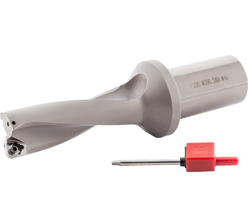 Сверло со сменными пластинами, отношение длины к диаметру D/L=3, типа UD30 с внутренним подводом СОЖ. Рабочий диаметр D=34 мм, диаметр хвостовика Weldon d=40 мм. Максимальная глубина сверления Lc=107 мм. Применяемые пластины: WCMX06T308.