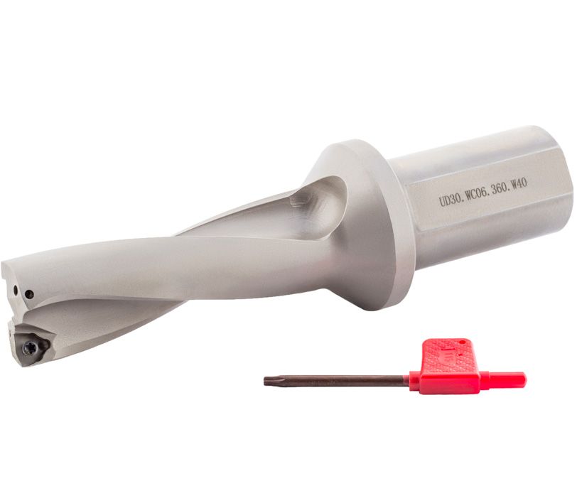 Сверло со сменными пластинами, отношение длины к диаметру D/L=3, типа UD30 с внутренним подводом СОЖ. Рабочий диаметр D=36 мм, диаметр хвостовика Weldon d=40 мм. Максимальная глубина сверления Lc=113 мм. Применяемые пластины: WCMX06T308.