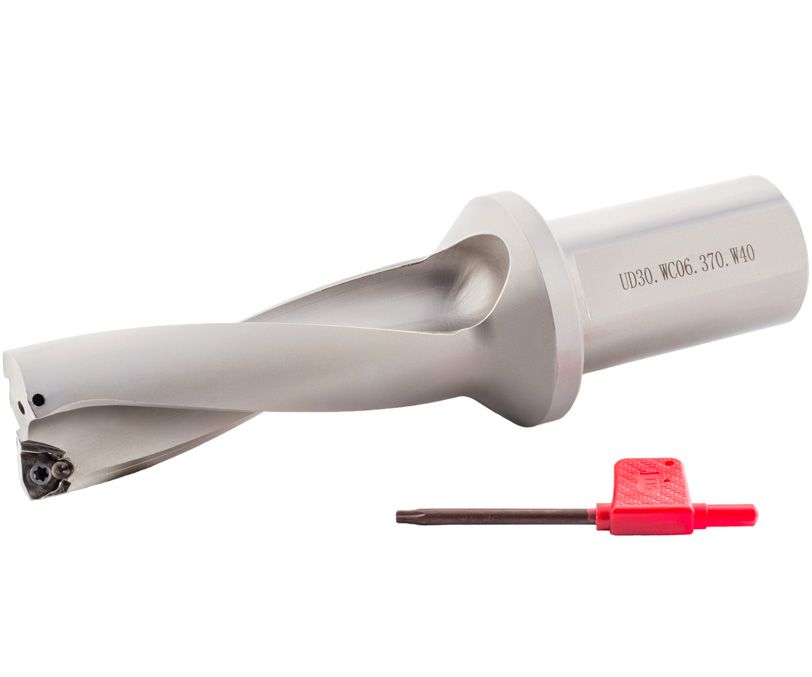 Сверло со сменными пластинами, отношение длины к диаметру D/L=3, типа UD30 с внутренним подводом СОЖ. Рабочий диаметр D=37 мм, диаметр хвостовика Weldon d=40 мм. Максимальная глубина сверления Lc=116 мм. Применяемые пластины: WCMX06T308.