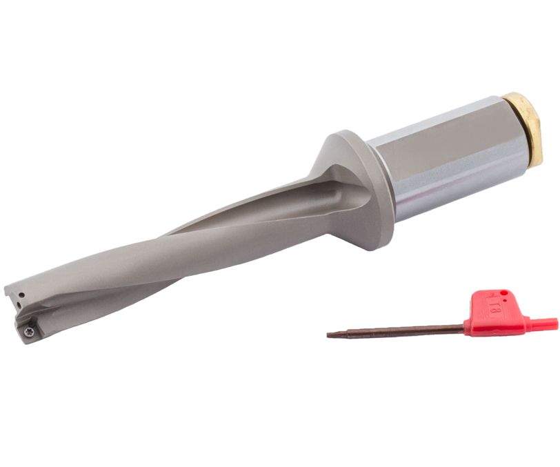 Сверло со сменными пластинами, отношение длины к диаметру D/L=5, типа UD50 с внутренним подводом СОЖ. Рабочий диаметр D=23,5 мм, диаметр хвостовика Weldon d=25 мм. Максимальная глубина сверления Lc=120 мм. Применяемые пластины: SP..07T308.
