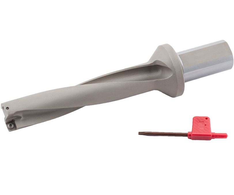 Сверло со сменными пластинами, отношение длины к диаметру D/L=5, типа UD50 с внутренним подводом СОЖ. Рабочий диаметр D=30,5 мм, диаметр хвостовика Weldon d=32 мм. Максимальная глубина сверления Lc=155 мм. Применяемые пластины: SP..090408.