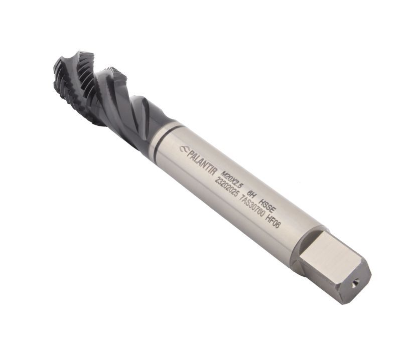 Машинно-ручной метчик PALANTIR, изготовленный из быстрорежущей стали HSS-E, может использоваться как вручную, так и в сочетании со станками с ЧПУ. С его помощью можно нарезать метрическую резьбу M20 с шагом 2,5 мм.