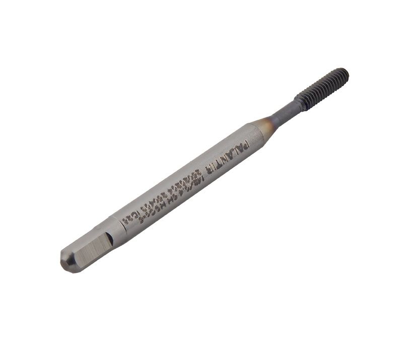 Бесстружечный машинный метчик-раскатник PALANTIR, изготовленный из быстрорежущей стали HSS-E, используется для нарезания метрической резьбы M2 с шагом 0,4 мм.