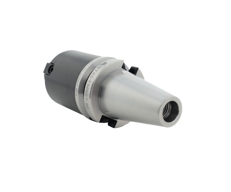 Фрезерный патрон BBT40-FMB27-090 (MAS 403, JIS B 6339) предназначен для фиксации торцевой насадной фрезы с диаметром посадочного отверстия 27 мм, используется во фрезерных станках с ЧПУ, обрабатывающих центрах. Установка фрезы в оправку производится затяжным винтом. Крепление патрона в шпинделе производится при помощи штревельного болта M16, который не входит в комплект поставки и приобретается дополнительно. Вылет патрона от шпинделя станка составляет 90 мм.
