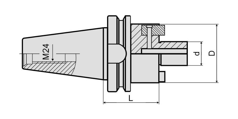Фрезерный патрон BT50-FMB32-200 (MAS 403, JIS B 6339) предназначен для фиксации торцевой насадной фрезы с диаметром посадочного отверстия 32 мм, используется во фрезерных станках с ЧПУ, обрабатывающих центрах. Установка фрезы в оправку производится затяжным винтом. Крепление патрона в шпинделе производится при помощи штревельного болта M24, который не входит в комплект поставки и приобретается дополнительно. Вылет патрона от шпинделя станка составляет 200 мм.