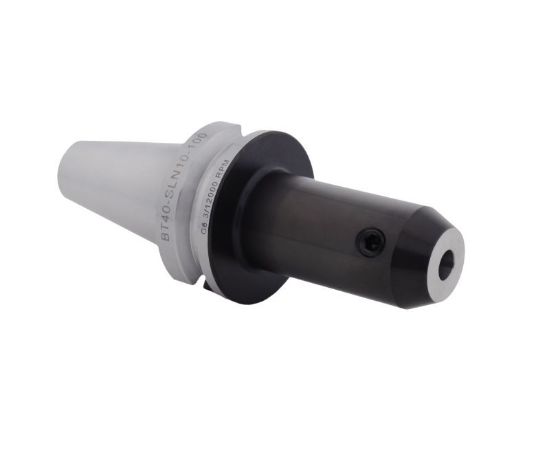 Патрон BBT40-SLN16-100 применяется для фиксации режущего инструмента с цилиндрическим хвостовиком Weldon диаметром 16 мм. В отличии от BT хвостовик BBT контактирует со шпинделем в двух зонах (конус + торец), обеспечивая жесткую и точную фиксацию оправки в станке. Для зажима инструмента используется один винт с шестигранной головкой. Фиксация хвостовика BBT40 в шпинделе производится при помощи штревельного болта M16, который не входит в комплект поставки и приобретается дополнительно. Тип подачи СОЖ: АD (через центральное отверстие). Вылет патрона от шпинделя станка составляет 100 мм.