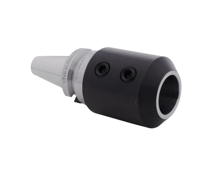 Патрон BBT40-SLN40-120 применяется для фиксации режущего инструмента с цилиндрическим хвостовиком Weldon диаметром 40 мм. В отличии от BT хвостовик BBT контактирует со шпинделем в двух зонах (конус + торец), обеспечивая жесткую и точную фиксацию оправки в станке. Для зажима инструмента используется один винт с шестигранной головкой. Фиксация хвостовика BBT40 в шпинделе производится при помощи штревельного болта M16, который не входит в комплект поставки и приобретается дополнительно. Тип подачи СОЖ: АD (через центральное отверстие). Вылет патрона от шпинделя станка составляет 120 мм.
