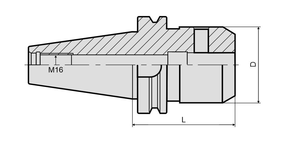 Патрон BT40-SLN08-050 предназначен для фиксации режущего инструмента с цилиндрическим хвостовиком Weldon диаметром 8 мм, используется в сверлильных, фрезерных станках с ЧПУ и обрабатывающих центрах. Для зажима инструмента используется один винт с шестигранной головкой. Фиксация хвостовика BT40 (MAS 403, JIS B 6339) в шпинделе производится при помощи штревельного болта M16, который не входит в комплект поставки и приобретается дополнительно. Тип подачи СОЖ: АD (через центральное отверстие). Вылет патрона от шпинделя станка составляет 50 мм.