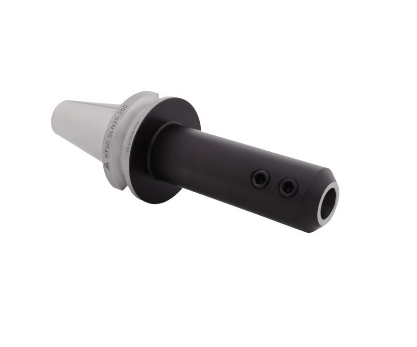 Патрон BT50-SLN25-250 предназначен для фиксации режущего инструмента с цилиндрическим хвостовиком Weldon диаметром 25 мм, используется сверлильных, фрезерных станках с ЧПУ и обрабатывающих центрах. Для зажима инструмента используются два винта с шестигранной головкой. Фиксация хвостовика BT50 (MAS 403, JIS B 6339) в шпинделе производится при помощи штревельного болта M24, который не входит в комплект поставки и приобретается дополнительно. Тип подачи СОЖ: АD (через центральное отверстие). Вылет патрона от шпинделя станка составляет 250 мм.