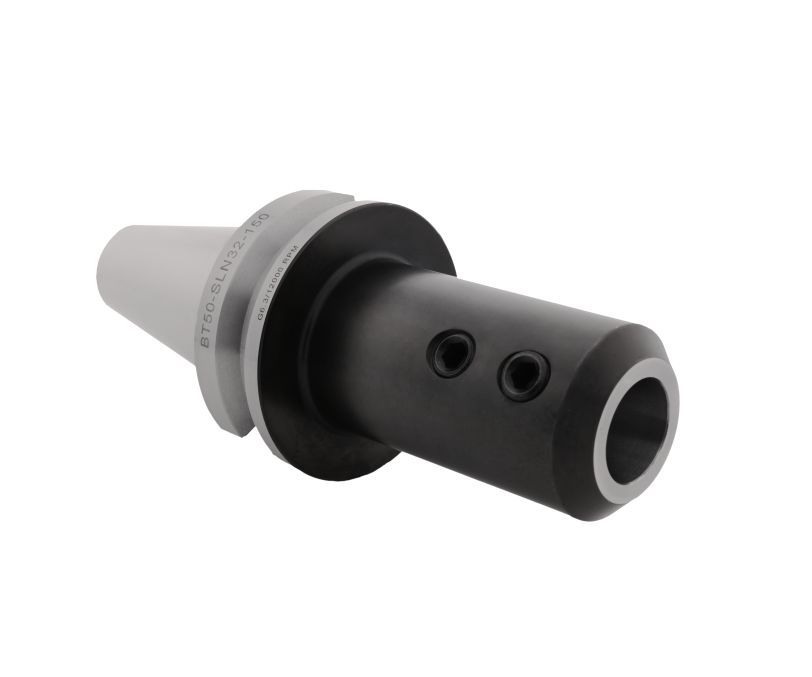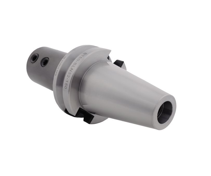 Патрон BT50-SLN32-150 предназначен для фиксации режущего инструмента с цилиндрическим хвостовиком Weldon диаметром 32 мм, используется сверлильных, фрезерных станках с ЧПУ и обрабатывающих центрах. Для зажима инструмента используются два винта с шестигранной головкой. Фиксация хвостовика BT50 (MAS 403, JIS B 6339) в шпинделе производится при помощи штревельного болта M24, который не входит в комплект поставки и приобретается дополнительно. Тип подачи СОЖ: АD (через центральное отверстие). Вылет патрона от шпинделя станка составляет 150 мм.