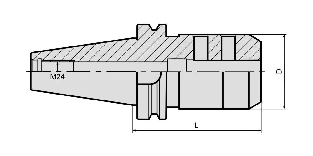 Патрон BT50-SLN32-300 предназначен для фиксации режущего инструмента с цилиндрическим хвостовиком Weldon диаметром 32 мм, используется сверлильных, фрезерных станках с ЧПУ и обрабатывающих центрах. Для зажима инструмента используются два винта с шестигранной головкой. Фиксация хвостовика BT50 (MAS 403, JIS B 6339) в шпинделе производится при помощи штревельного болта M24, который не входит в комплект поставки и приобретается дополнительно. Тип подачи СОЖ: АD (через центральное отверстие). Вылет патрона от шпинделя станка составляет 300 мм.