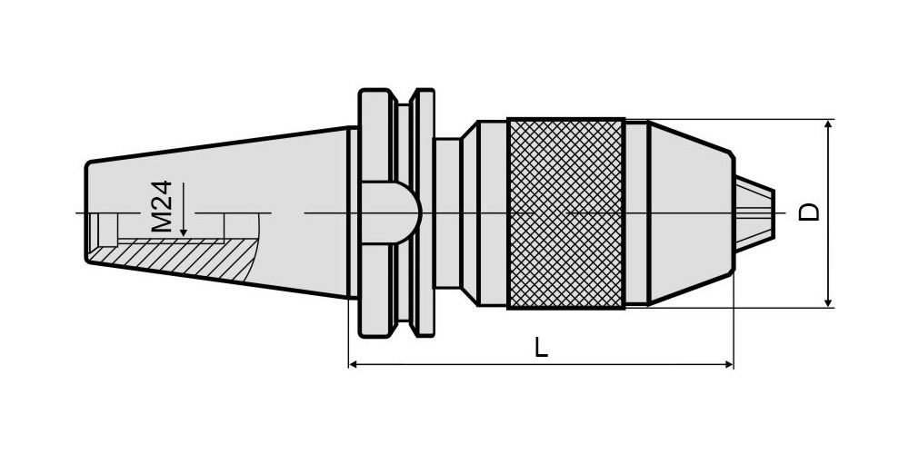 Сверлильный патрон BT50-APU8-95 предназначен для фиксации режущего инструмента с цилиндрическим хвостовиком диаметром от 1 до 8 мм. Данный патрон используется на фрезерных, сверлильных станках с ЧПУ и обрабатывающих центрах. Трехкулачковый самозажимной механизм обеспечивает надежное крепление инструмента в корпусе патрона. Крепление хвостовика BT50 (MAS 403, JIS B 6339) в шпинделе производится при помощи штревельного болта M24, который не входит в комплект поставки и приобретается дополнительно. Конструкция патрона не предусматривает подачу СОЖ (тип А). Вылет патрона от шпинделя станка составляет 95 мм.