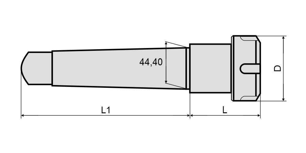 Фрезерный патрон MTA5-ER40 (ISO 296, DIN 228) предназначен для фиксации режущего инструмента с цилиндрическим хвостовиком. Данный тип патронов используется для выполнения операций сверления. Установка режущего инструмента в корпус патрона осуществляется при помощи зажимной цанги ER40 (DIN 6499) и гайки типа UM. В зависимости от размера посадочного отверстия цанги в патрон устанавливается сверло с диаметром хвостовика от 3 до 26 мм. Конструкция без подачи СОЖ.
