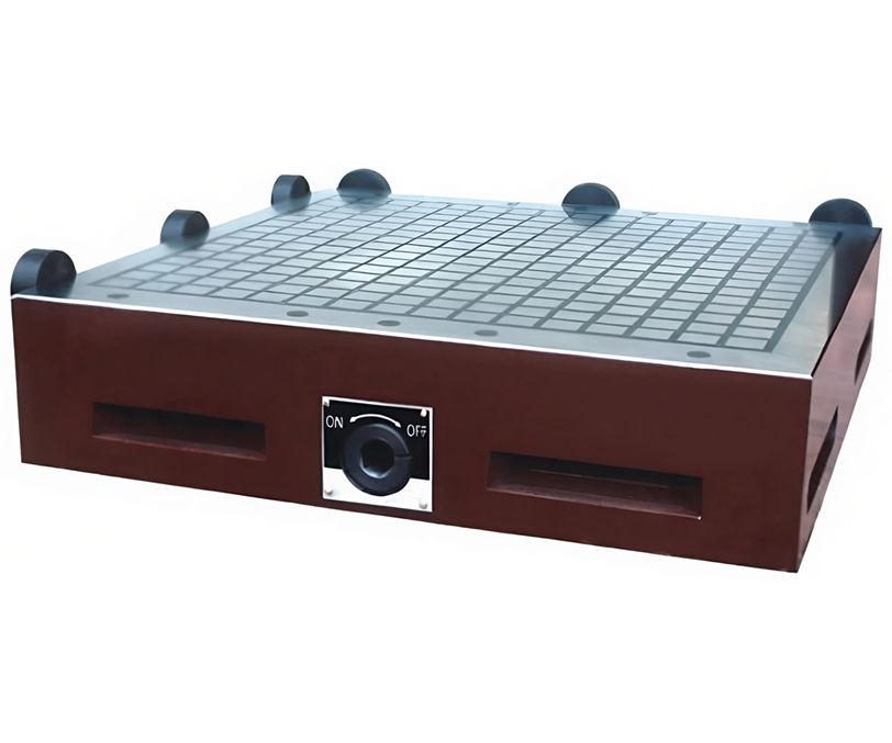 Постоянный магнитный стол предназначен для высокоточной механической обработки заготовок на станках с ЧПУ и обрабатывающих центрах. Обеспечивает надежную фиксацию деталей толщиной от 2 мм, обладает силой притяжения до 18 кгс/см² и сохраняет стабильные рабочие свойства при воздействии охлаждающей жидкости. Габариты устройства составляют: длина — 500 мм, ширина — 600 мм, высота — 90 мм. Магнитные ячейки размером 18×18 мм расположены равномерно, общее число магнитных полюсов — 456 шт., вес конструкции — 155 кг.