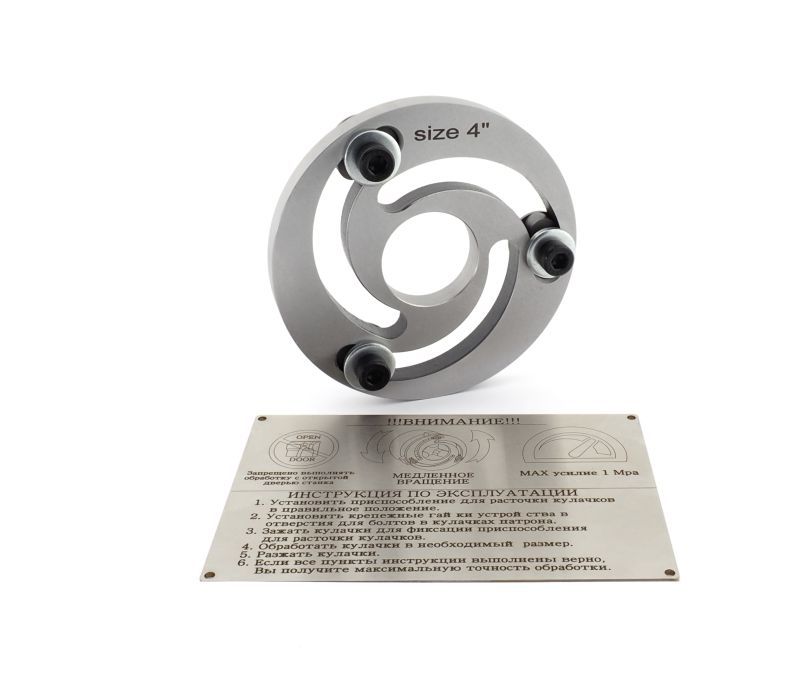 Приспособление (оправка) JBF-06 предназначено для расточки сырых (незакаленных) кулачков под определенную форму и размер детали. Используется с гидравлическим, трехкулачковым токарным патроном размером 6" (диаметр 168 мм). Крепежный набор для фиксации кулачков входит в комплект поставки.