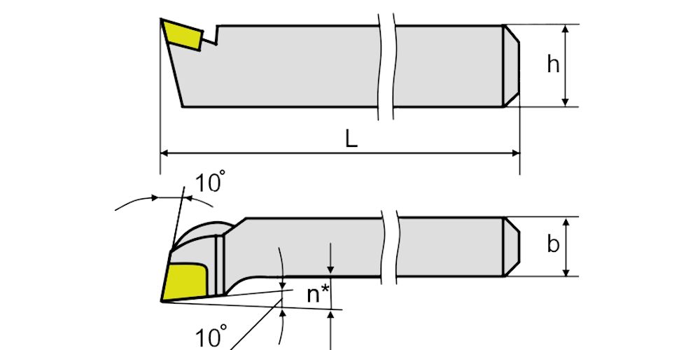 Резец токарный подрезной отогнутый ГОСТ 18880-73 используется для протачивания заготовок вдоль оси ее вращения, подрезки уступов под прямым или острым углом к основному направлению обтачивания и обработка торцовых поверхностей. Они работают с поперечной и продольной подачей. Он может использоваться как на универсальных токарных станках, так и на специализированных.