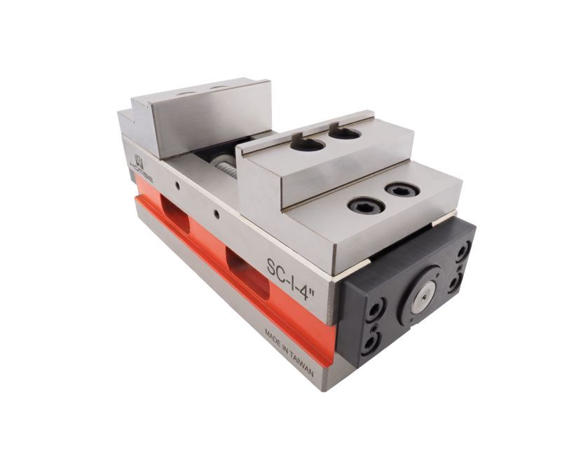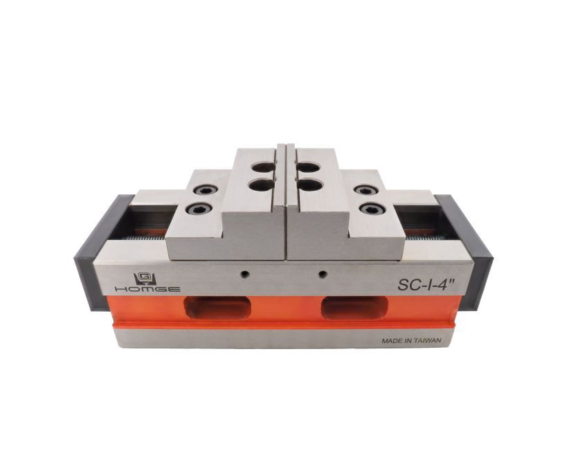"Тиски Homge SC-I-4 разработаны для использования в передовых 5-осевых станках с ЧПУ. Особенностью этой модели является её модульная конструкция, позволяющая изменять расположение зажимных элементов в зависимости от формы заготовки, что обеспечивает высокую степень универсальности работы с разными изделиями. Все блоки оснащены системой автоматической центровки и могут легко перемещаться вдоль оси, что существенно облегчает установку и настройку оборудования. В производстве данных тисков применяется высокопрочный чугун с шаровидным графитом сорта FCD 60, обладающий повышенными показателями прочности и долговечности. Направляющие компоненты закалены до твердости 50 HRC, что обеспечивает надежное удержание заготовок и продолжительный ресурс инструмента без снижения точности обработки. Такое конструктивное решение позволяет повысить общую производительность благодаря сокращению времени на переустановку и техобслуживание. Эта модель выделяется своей универсальностью в установке: тиски SC-I-4 могут монтироваться как горизонтально, так и вертикально, что делает их подходящими для разнообразных производственных нужд. Ширина захватов составляет 100 мм, что позволяет уверенно удерживать даже большие заготовки, а максимальный ход захватов достигает 95 мм. Общая длина устройства – 278 мм, что облегчает его интеграцию в существующие производственные линии. Таким образом, тиски Homge SC-I-4 представляют собой надежное и функциональное оборудование, которое станет незаменимым помощником в любой мастерской или промышленном цехе, обеспечивая высокую точность обработки и долговечность эксплуатации."