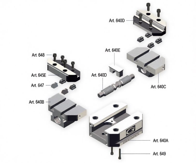 Multitasking ART.640-3x166 (бренд Gerardi / Италия) - самоцентрирующиеся прецизионные тиски, применяемых для фиксации заготовок на рабочем столе 5-осевых фрезерных обрабатывающих центров. Конструкция тисков позволяет эффективно обрабатывать заготовки сложной формы с труднодоступными зонами. Основные параметры: ширина губок - 138 мм; ход губок - 108 мм; высота губок - 30 мм; длина основания (базы) - 166 мм.