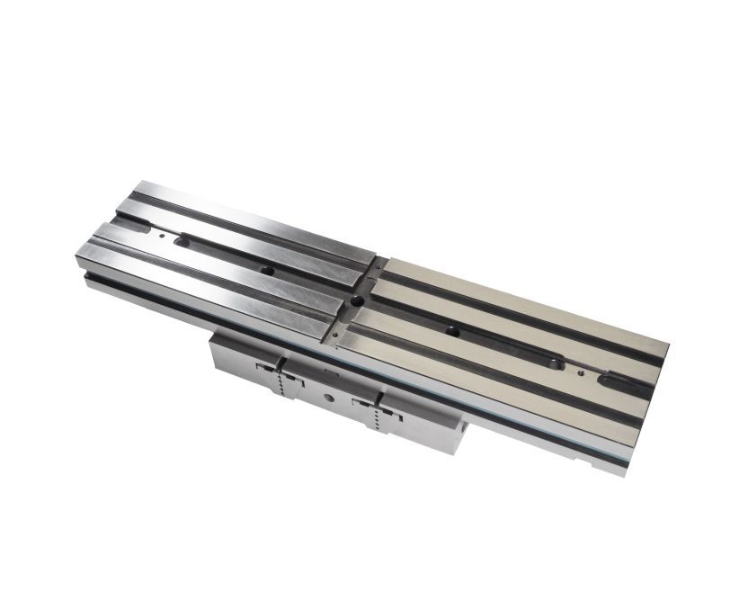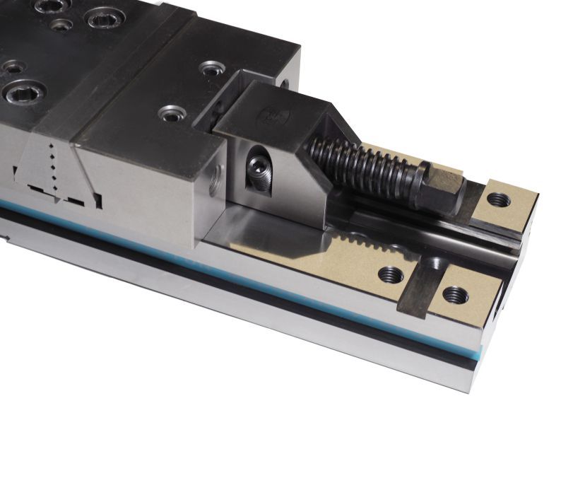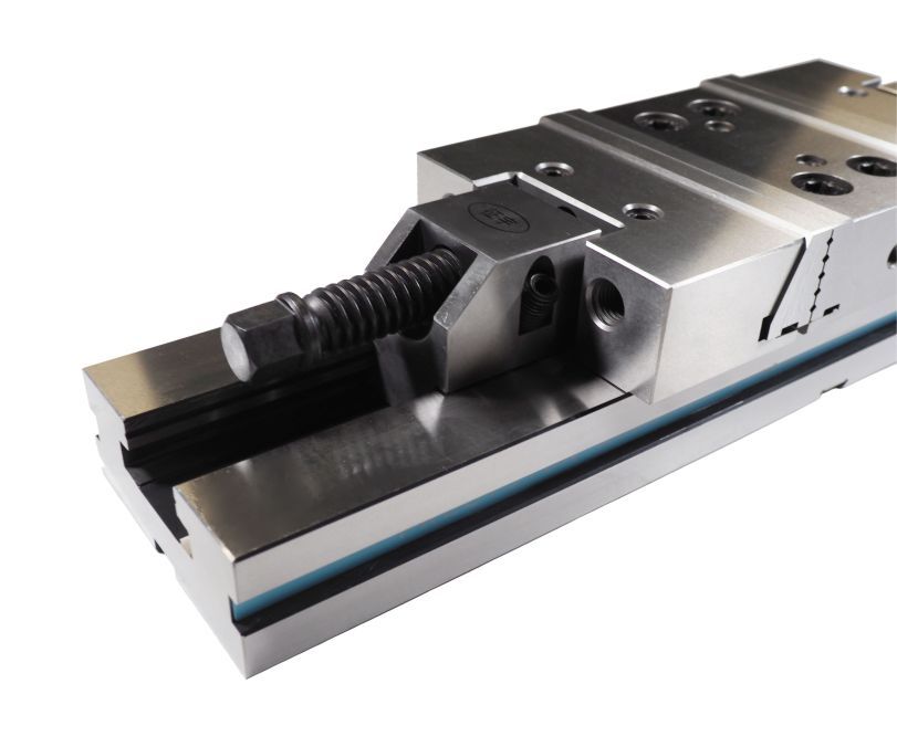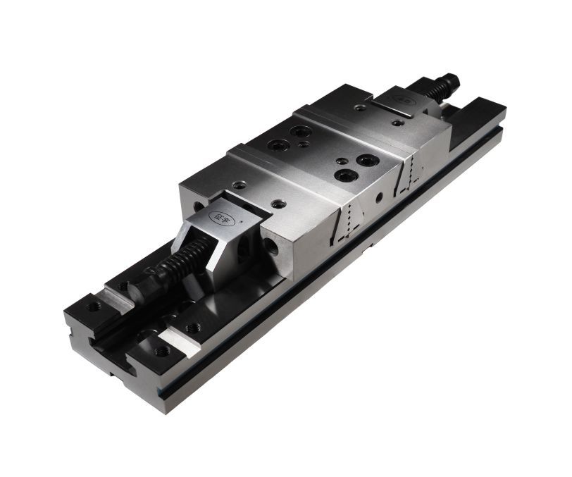 Тиски являются модульными и состоят из основания и трех блоков (два подвижных и один центральный). Блоки легко демонтируются и устанавливаются в нужной конфигурации. Для повышения долговечности и надёжности конструкции используется высококачественная легированная сталь. Направляющие компоненты закалены до твёрдости 58–62 HRC, что существенно улучшает точность зажима и увеличивает ресурс работы оборудования.