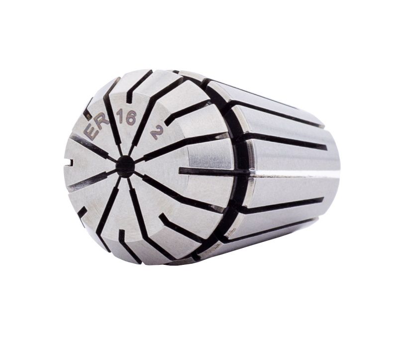 Цанга ER16-2 (DIN 6499B, ISO 15488-B) предназначена для фиксации осевого инструмента с диаметром хвостовика 1,6 ... 2 мм, применяется совместно с патронами типа ER. Сквозное отверстие позволяет размещать инструмент, длина которого превышает высоту цанги. Зажимное усилие на хвостовик инструмента осуществляется в двух зонах, что обеспечивает надежное крепление инструмента и существенное снижает радиальное биение в процессе эксплуатации.